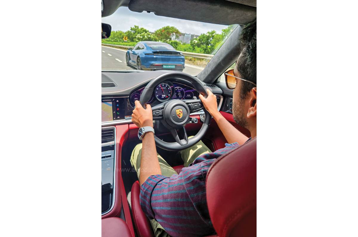 But that’s exactly what I set out to do here; put the spotlight back. And I wanted to do this with a long drive between cities, through highways, mountain roads and a bit of gnarly traffic for good measure. Trouble is, my colleagues felt the Taycan should come along for the ride, just to keep it honest. Reluctant as I am to let silly comparisons get in the way of my ode to the Panamera, they do have a point. Both wear the Turbo S badge, an honour bestowed on only the fastest Porsches, both cost around Rs 2.4 crore (ex-showroom) before options, and yes, despite their drastically different power units, they both have the same job description.Â