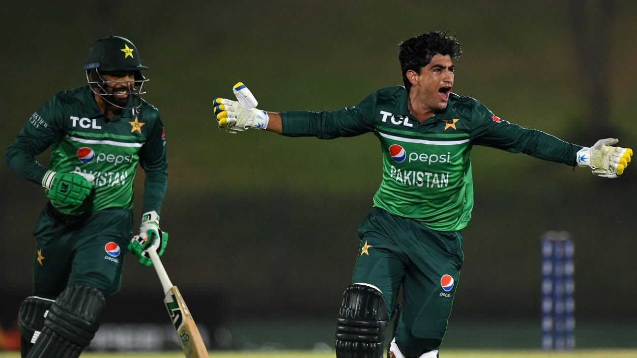 Naseem reprises the frenzied tossing of the helmet and gloves, but this time he doesn’t get far before his team-mates are all over him. It’s almost like they expect him, the youngest man in the side, to lead them out of trouble each time. The context of the win from last year, the acrimony that followed, and the spice that tinges each encounter between these sides only makes this win sweeter.