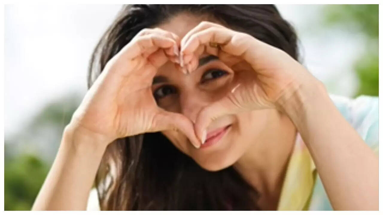 In the picture, Alia is seen making a heart with her hands and putting on her best smile for the camera.