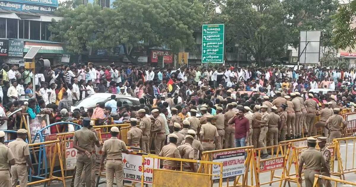 While the police engaged in talks with the DMK activists, it ended in failure. Following this, the police used batons on the volunteers who were blocking the road and dismissed them. Now road traffic leading to Koyambedu flyover has been banned following their request.