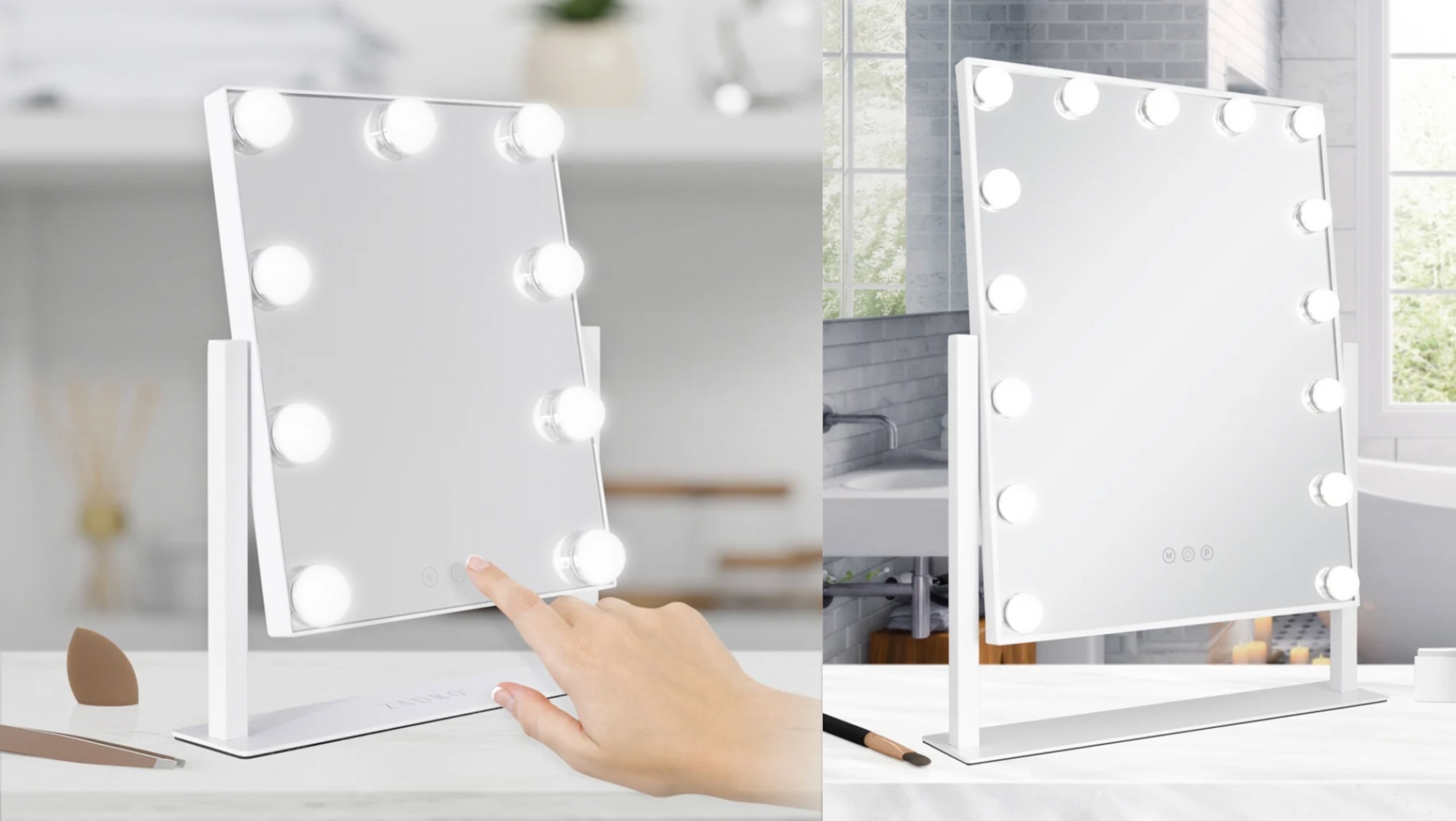 Ready for your closeup? Zadro’s LED-Lighted Hollywood Vanity Mirror offers 1X magnification and crystal clear view. Equipped with energy-saving dome LED bulbs, these lights are cool to the touch and provide a 120-degree beam angle with a stylish sphere PC lampshade design. You can customize your glow with dimmable brightness and three light settings (cool white, warm white, and neutral white), while the convenient touch sensors allow you to effortlessly adjust brightness, switch between light settings, or power the mirror on/off. With an adjustable 360-degree rotation, you can achieve the best angle for flawless application. Three sizes are available.